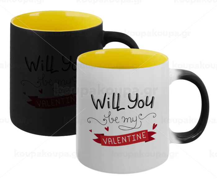Will you be my Valentine???, Κούπα Μαγική εσωτερικό κίτρινη, κεραμική 330ml που αλλάζει χρώμα με το ζεστό ρόφημα
