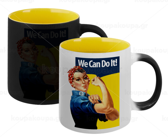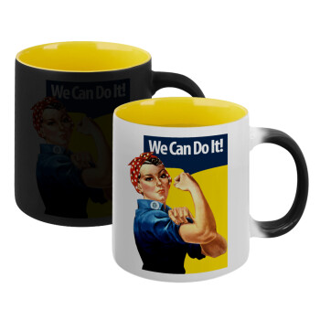Rosie we can do it!, Κούπα Μαγική εσωτερικό κίτρινη, κεραμική 330ml που αλλάζει χρώμα με το ζεστό ρόφημα