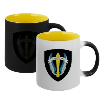 Έμβλημα Μονάδων Καταδρομών Ο Τολμων Νικα - Λοκ, Κούπα Μαγική εσωτερικό κίτρινη, κεραμική 330ml που αλλάζει χρώμα με το ζεστό ρόφημα