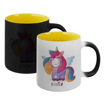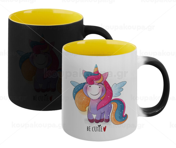 Μονόκερος, Κούπα Μαγική εσωτερικό κίτρινη, κεραμική 330ml που αλλάζει χρώμα με το ζεστό ρόφημα