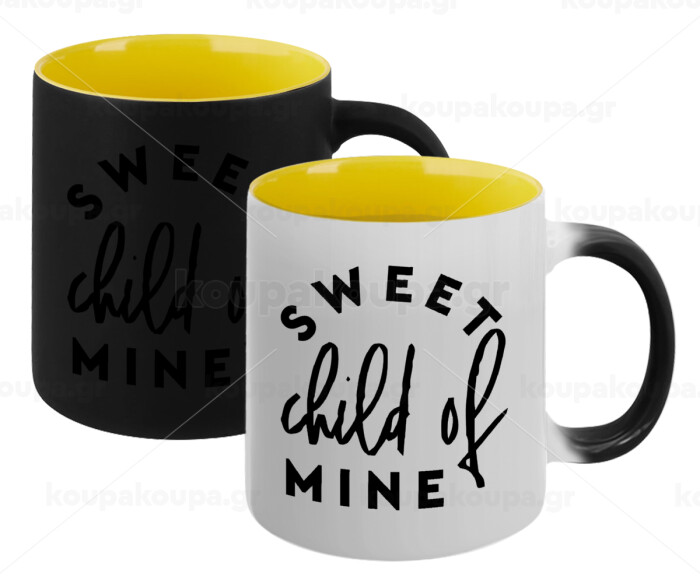 Sweet child of mine!, Κούπα Μαγική εσωτερικό κίτρινη, κεραμική 330ml που αλλάζει χρώμα με το ζεστό ρόφημα