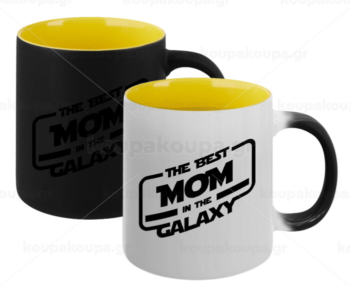 The Best MOM in the Galaxy, Κούπα Μαγική εσωτερικό κίτρινη, κεραμική 330ml που αλλάζει χρώμα με το ζεστό ρόφημα