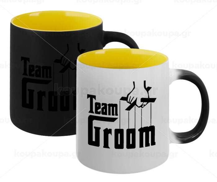 Team Groom, Κούπα Μαγική εσωτερικό κίτρινη, κεραμική 330ml που αλλάζει χρώμα με το ζεστό ρόφημα