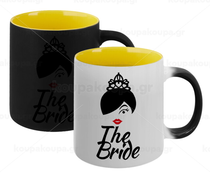 The Bride red kiss, Κούπα Μαγική εσωτερικό κίτρινη, κεραμική 330ml που αλλάζει χρώμα με το ζεστό ρόφημα