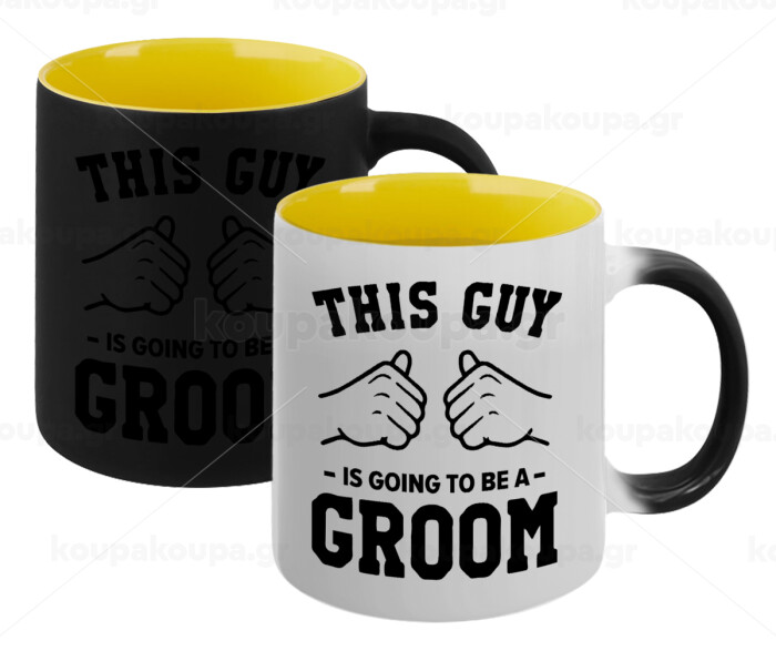 This Guy is going to be a GROOM, Κούπα Μαγική εσωτερικό κίτρινη, κεραμική 330ml που αλλάζει χρώμα με το ζεστό ρόφημα