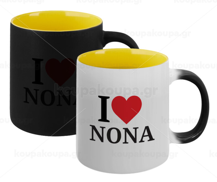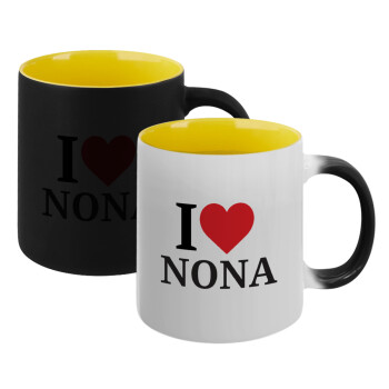 I Love ΝΟΝΑ, Κούπα Μαγική εσωτερικό κίτρινη, κεραμική 330ml που αλλάζει χρώμα με το ζεστό ρόφημα