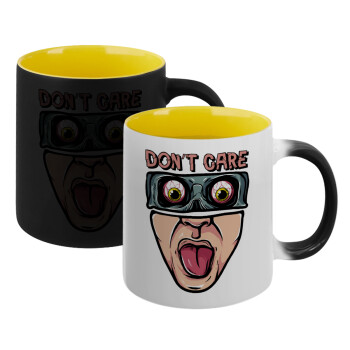 Don't Care, Κούπα Μαγική εσωτερικό κίτρινη, κεραμική 330ml που αλλάζει χρώμα με το ζεστό ρόφημα