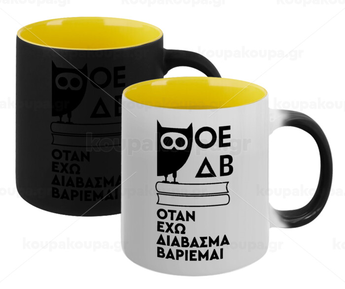 ΟΕΔΒ, Κούπα Μαγική εσωτερικό κίτρινη, κεραμική 330ml που αλλάζει χρώμα με το ζεστό ρόφημα