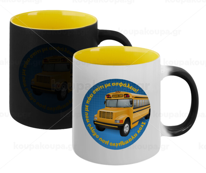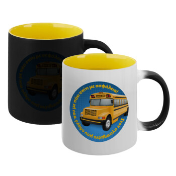 Στον αγαπημένο μου οδηγό σχολικού!, Κούπα Μαγική εσωτερικό κίτρινη, κεραμική 330ml που αλλάζει χρώμα με το ζεστό ρόφημα