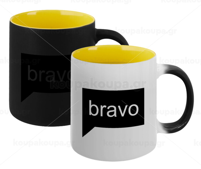 Bravo, Κούπα Μαγική εσωτερικό κίτρινη, κεραμική 330ml που αλλάζει χρώμα με το ζεστό ρόφημα