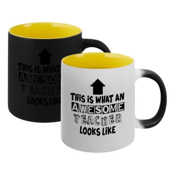 This is what an awesome teacher looks like!!! , Κούπα Μαγική εσωτερικό κίτρινη, κεραμική 330ml που αλλάζει χρώμα με το ζεστό ρόφημα