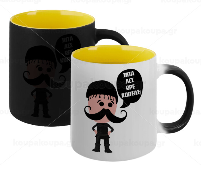 Κρητικός "Ίντα λες ωρέ κοπέλι", Κούπα Μαγική εσωτερικό κίτρινη, κεραμική 330ml που αλλάζει χρώμα με το ζεστό ρόφημα