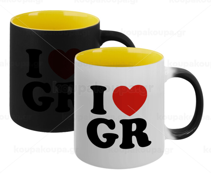 I Love GR, Κούπα Μαγική εσωτερικό κίτρινη, κεραμική 330ml που αλλάζει χρώμα με το ζεστό ρόφημα