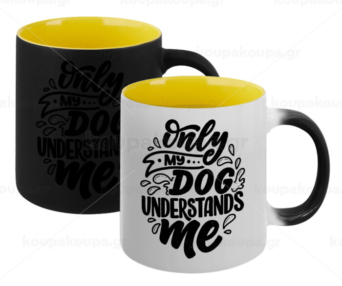 Only my DOG, understands me, Κούπα Μαγική εσωτερικό κίτρινη, κεραμική 330ml που αλλάζει χρώμα με το ζεστό ρόφημα