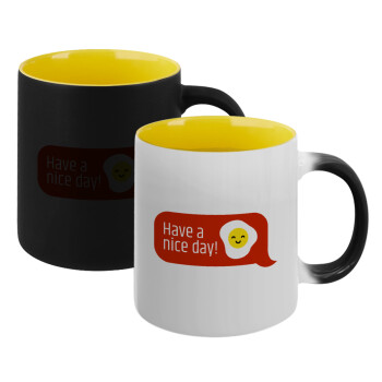 Have a nice day Emoji, Κούπα Μαγική εσωτερικό κίτρινη, κεραμική 330ml που αλλάζει χρώμα με το ζεστό ρόφημα