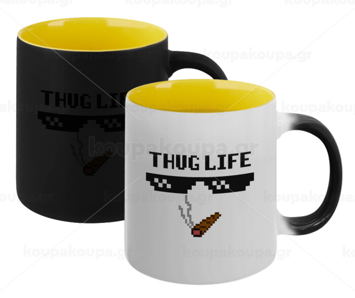 thug life, Κούπα Μαγική εσωτερικό κίτρινη, κεραμική 330ml που αλλάζει χρώμα με το ζεστό ρόφημα