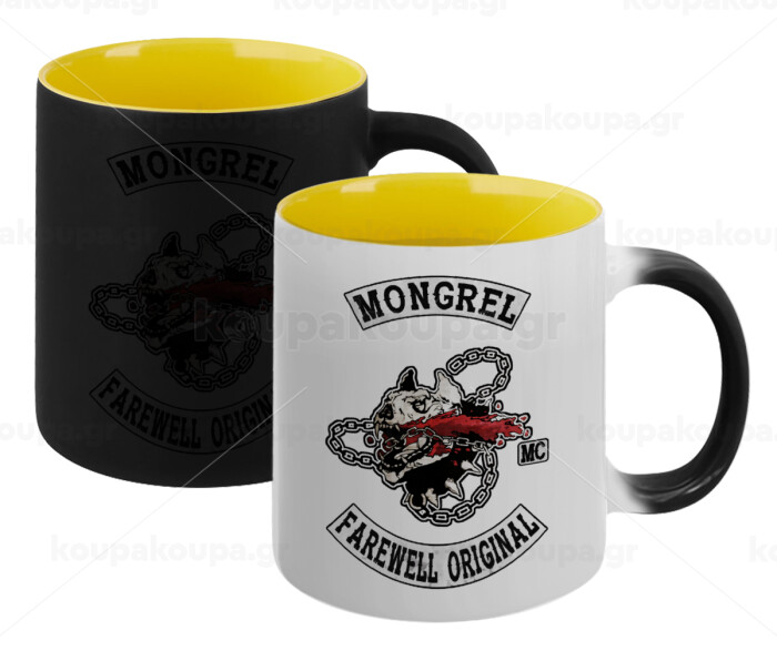 Day's Gone, mongrel farewell original, Κούπα Μαγική εσωτερικό κίτρινη, κεραμική 330ml που αλλάζει χρώμα με το ζεστό ρόφημα