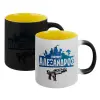 Fortnite with gun με το όνομα σου, Κούπα Μαγική εσωτερικό κίτρινη, κεραμική 330ml που αλλάζει χρώμα με το ζεστό ρόφημα