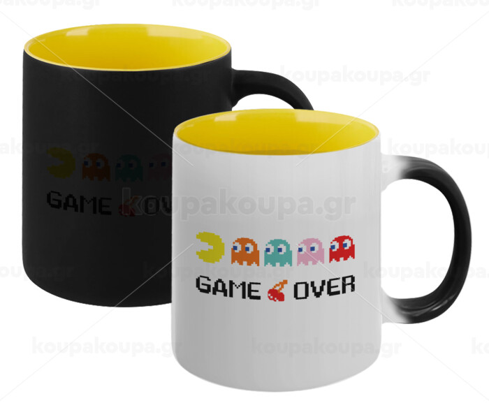 GAME OVER pac-man, Κούπα Μαγική εσωτερικό κίτρινη, κεραμική 330ml που αλλάζει χρώμα με το ζεστό ρόφημα