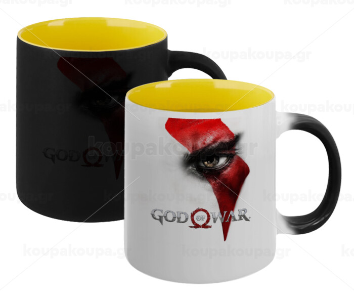 God of war Stratos, Κούπα Μαγική εσωτερικό κίτρινη, κεραμική 330ml που αλλάζει χρώμα με το ζεστό ρόφημα