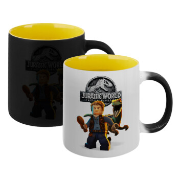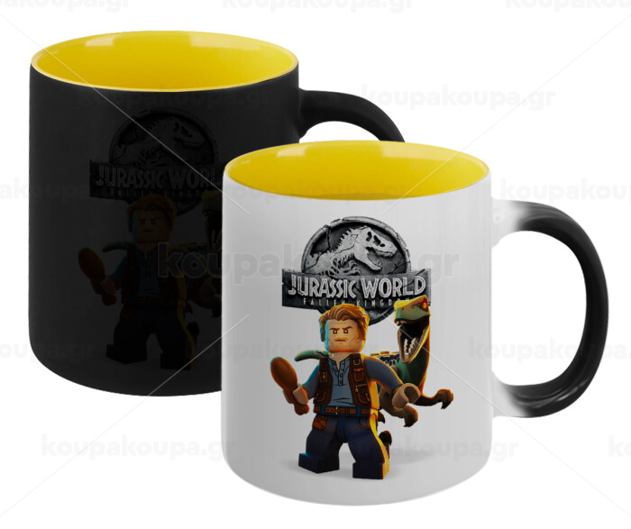 Jurassic world, Κούπα Μαγική εσωτερικό κίτρινη, κεραμική 330ml που αλλάζει χρώμα με το ζεστό ρόφημα