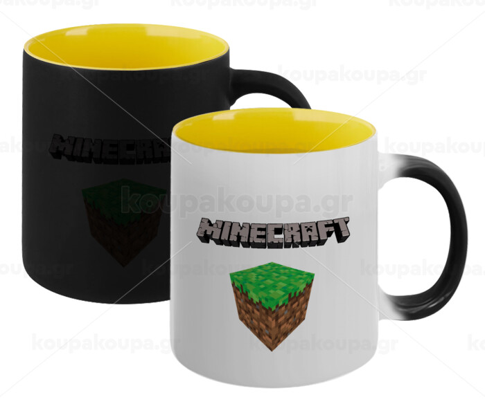Minecraft dirt, Κούπα Μαγική εσωτερικό κίτρινη, κεραμική 330ml που αλλάζει χρώμα με το ζεστό ρόφημα