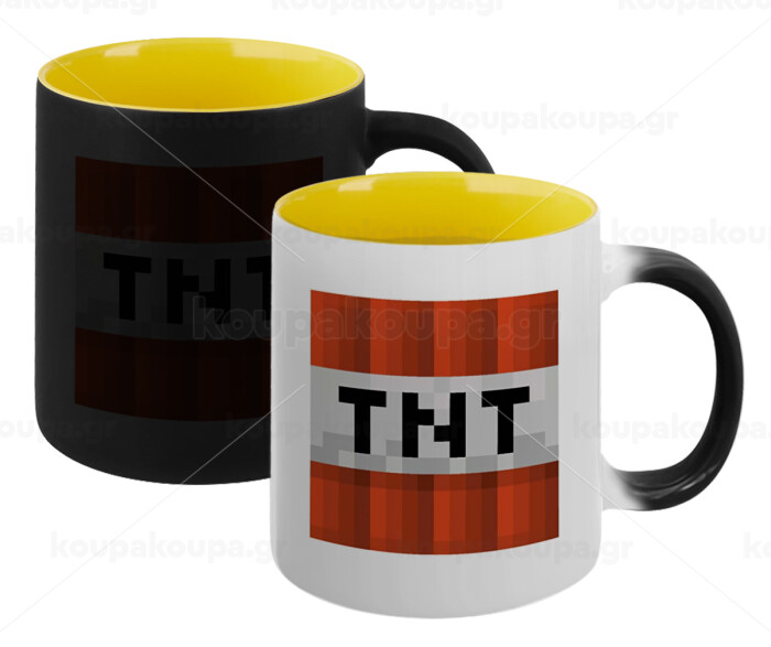 Minecraft TNT, Κούπα Μαγική εσωτερικό κίτρινη, κεραμική 330ml που αλλάζει χρώμα με το ζεστό ρόφημα