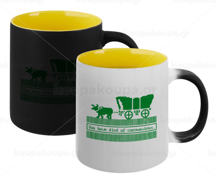 Oregon Trail, cov... edition, Κούπα Μαγική εσωτερικό κίτρινη, κεραμική 330ml που αλλάζει χρώμα με το ζεστό ρόφημα