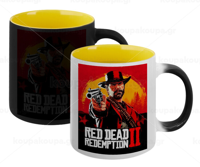 Red Dead Redemption 2, Κούπα Μαγική εσωτερικό κίτρινη, κεραμική 330ml που αλλάζει χρώμα με το ζεστό ρόφημα