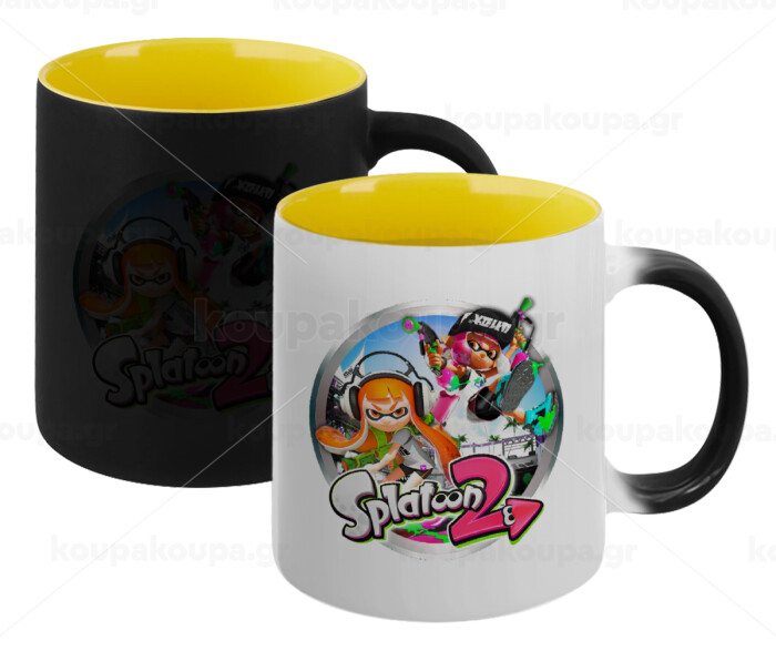 Splatoon 2, Κούπα Μαγική εσωτερικό κίτρινη, κεραμική 330ml που αλλάζει χρώμα με το ζεστό ρόφημα