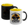 You need a ride to the train station, Κούπα Μαγική εσωτερικό κίτρινη, κεραμική 330ml που αλλάζει χρώμα με το ζεστό ρόφημα