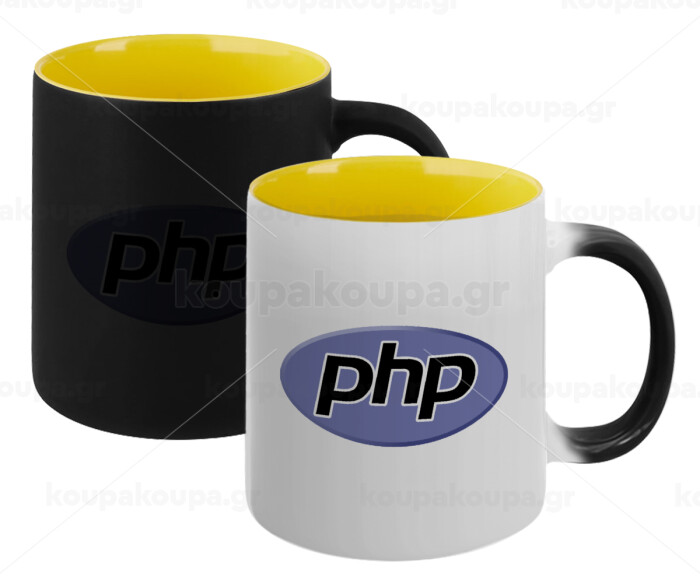 PHP, Κούπα Μαγική εσωτερικό κίτρινη, κεραμική 330ml που αλλάζει χρώμα με το ζεστό ρόφημα