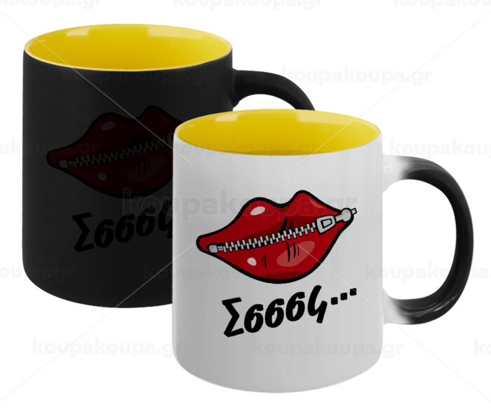 Σσσσς..., Κούπα Μαγική εσωτερικό κίτρινη, κεραμική 330ml που αλλάζει χρώμα με το ζεστό ρόφημα