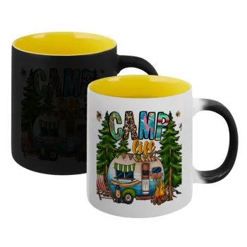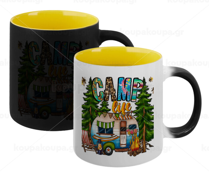 Camp Life, Κούπα Μαγική εσωτερικό κίτρινη, κεραμική 330ml που αλλάζει χρώμα με το ζεστό ρόφημα
