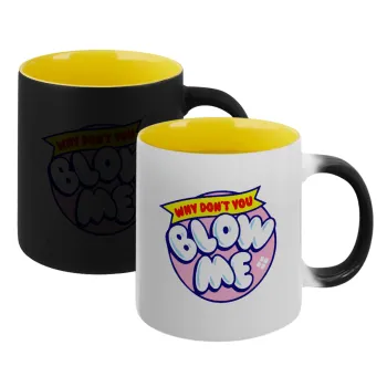 Why Don't You Blow Me Funny, Κούπα Μαγική εσωτερικό κίτρινη, κεραμική 330ml που αλλάζει χρώμα με το ζεστό ρόφημα