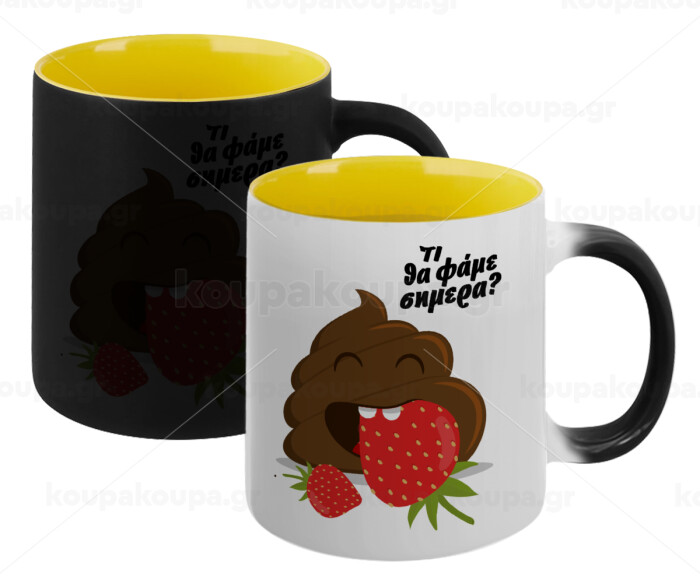 Τι θα φάμε σημερα???, Κούπα Μαγική εσωτερικό κίτρινη, κεραμική 330ml που αλλάζει χρώμα με το ζεστό ρόφημα