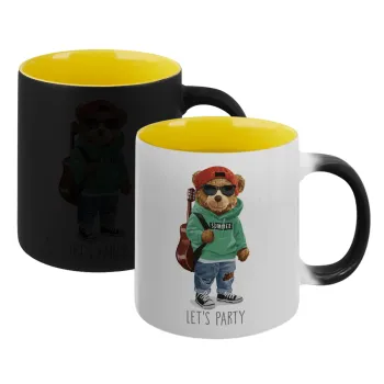 Let's Party Bear, Κούπα Μαγική εσωτερικό κίτρινη, κεραμική 330ml που αλλάζει χρώμα με το ζεστό ρόφημα
