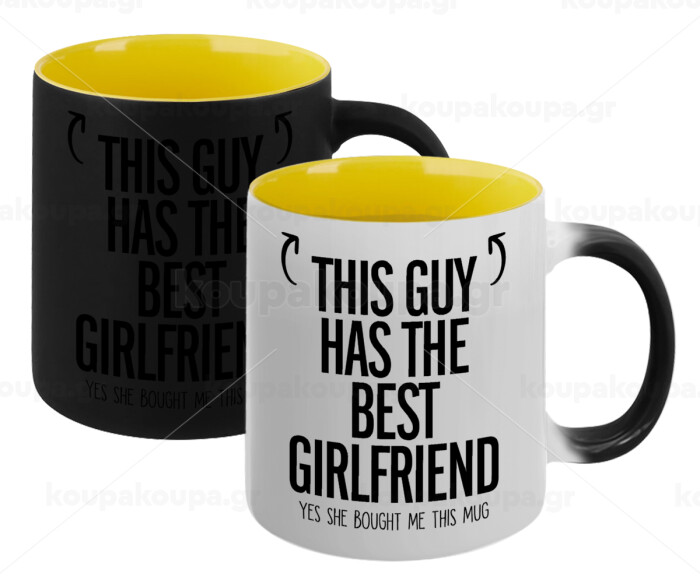 This guy has the best Girlfriend, Κούπα Μαγική εσωτερικό κίτρινη, κεραμική 330ml που αλλάζει χρώμα με το ζεστό ρόφημα