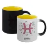 Ζώδια Ιχθύες, Κούπα Μαγική εσωτερικό κίτρινη, κεραμική 330ml που αλλάζει χρώμα με το ζεστό ρόφημα