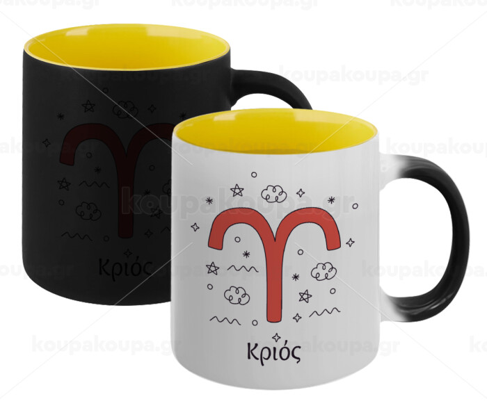 Ζώδια Κριός, Κούπα Μαγική εσωτερικό κίτρινη, κεραμική 330ml που αλλάζει χρώμα με το ζεστό ρόφημα