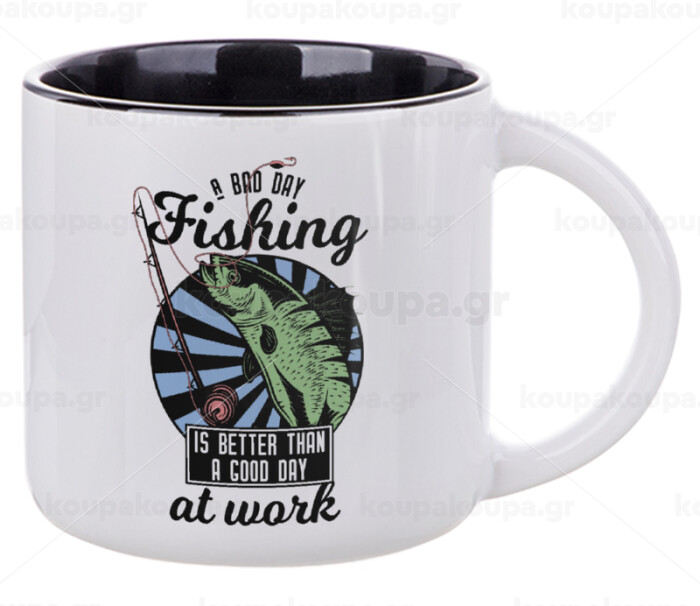 A bad day FISHING is better than a good day at work, Κούπα κεραμική 400ml Λευκή/Μαύρη