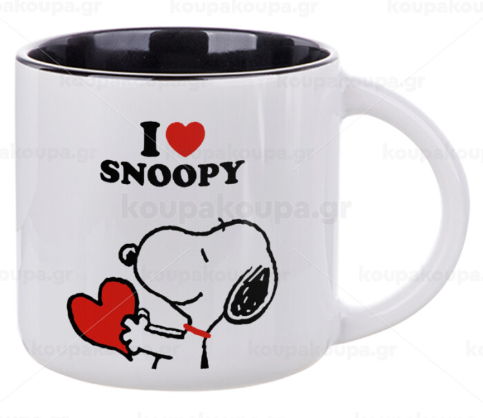 I LOVE SNOOPY, Κούπα κεραμική 400ml Λευκή/Μαύρη