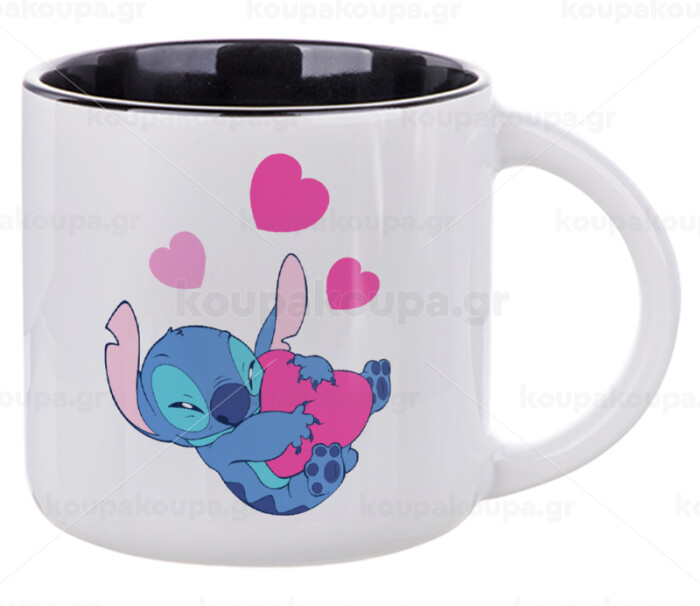 Lilo & Stitch hugs and hearts, Κούπα κεραμική 400ml Λευκή/Μαύρη