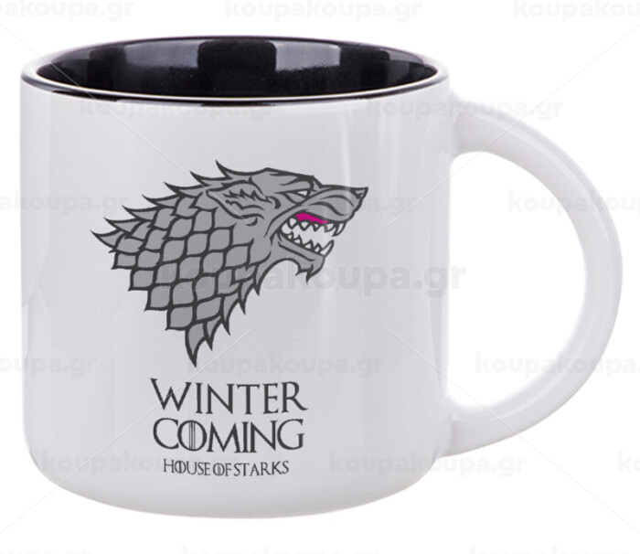 GOT House of Starks, winter coming, Κούπα κεραμική 400ml Λευκή/Μαύρη