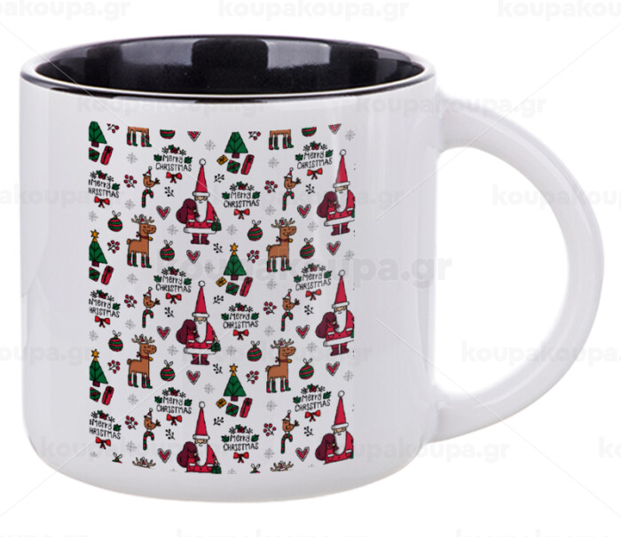 Santas, Deers & Trees, Κούπα κεραμική 400ml Λευκή/Μαύρη