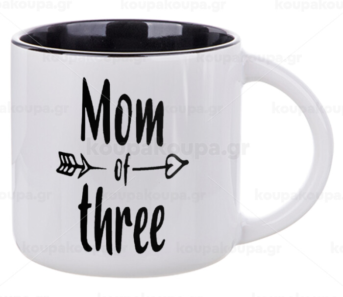 Mom of three, Κούπα κεραμική 400ml Λευκή/Μαύρη