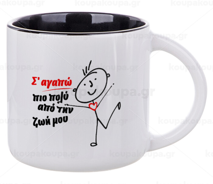 Σ'αγαπώ πιο πολύ από την ζωή μου!!!, Κούπα κεραμική 400ml Λευκή/Μαύρη
