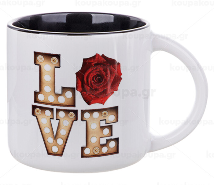 Love lights and roses, Κούπα κεραμική 400ml Λευκή/Μαύρη