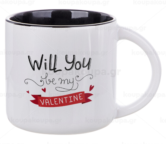 Will you be my Valentine???, Κούπα κεραμική 400ml Λευκή/Μαύρη
