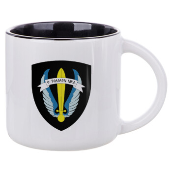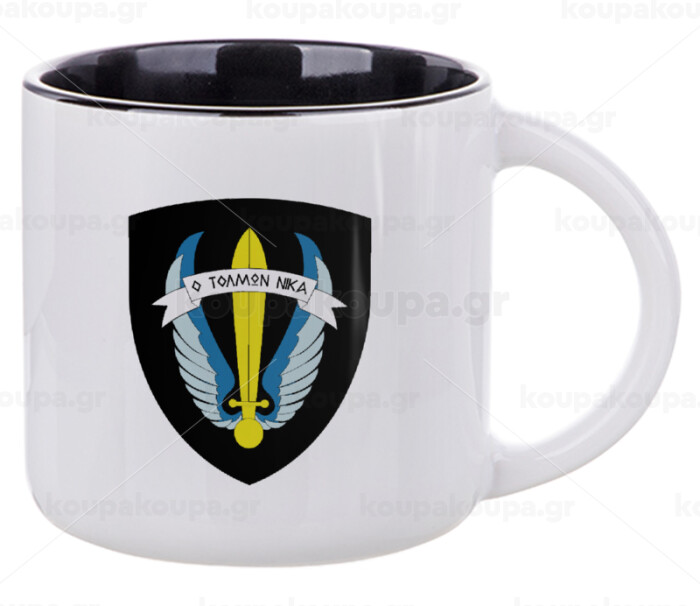 Έμβλημα Μονάδων Καταδρομών Ο Τολμων Νικα - Λοκ, Κούπα κεραμική 400ml Λευκή/Μαύρη